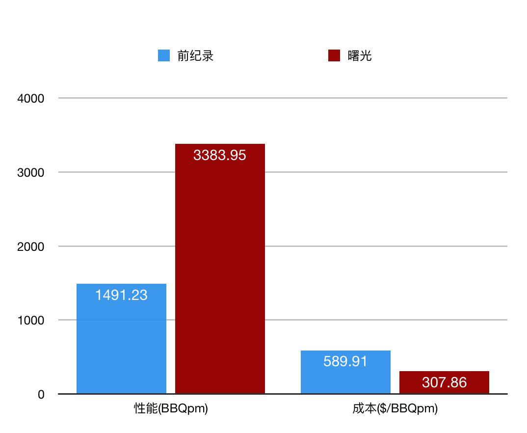 “Comparing with the previous world record, Sugon cluster with I620-G30 servers completes 3383.95 Big-bench Queries per minute, which is more than twice the rate of previous one and the cost for each query is only $307.86, which is almost half the pervious price/performance record,if regardless of the different scale factors between them. ” Qin said.